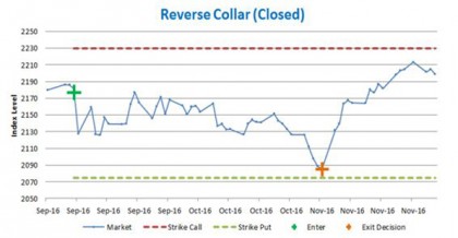 *A reverse collar is selling (short/writing) a put option and buying (long) the call option on the same index. At the same time, to cover any negative market movement and therefore the short put, we sell the same face value of the contracts short, with futures contracts in the S&P500 market.